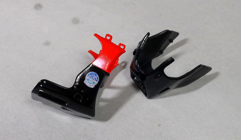 ホイールの方は、中央のHマークを赤くしたいですが、モールドが小さくて浅い。。。2つ上の写真見てみてください。なんも考えずに缶スプレーで