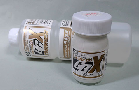 クレオスの GGX カラーの白です。隠蔽力がかなり